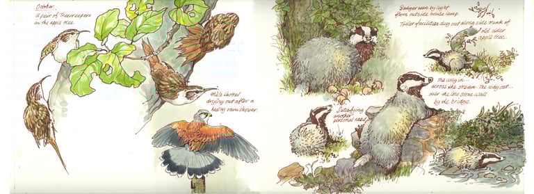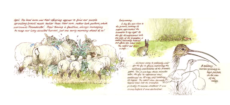 The Poundwater Sketchbook was a book proposal Ken was working on, based on observations of a life in and around the garden at the family home, Poundwater. There are sheaves of sketches and notes collected over a number of years – a few were developed into sample spreads